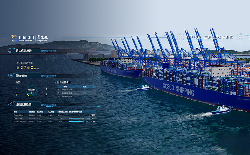 青岛港调度指挥系统通过对模块功能进行追踪提取,结合三维GIS空间技术,更直观的展示港口业务和作业效率,整合各数据平台的数据资源,为港口生产调度提供及时准确的数据分析支持。